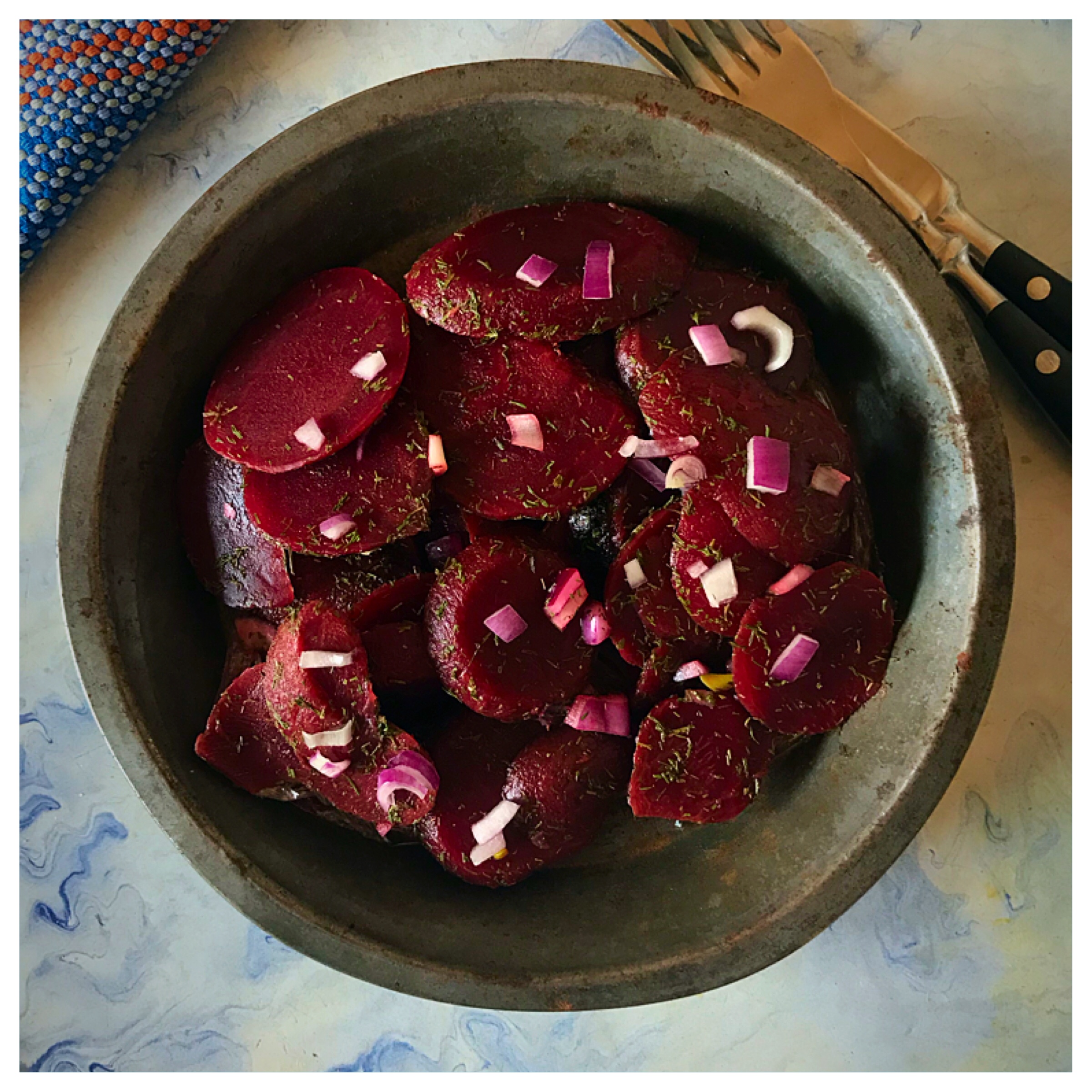 Quick summer salads are a must for you right now. During the last meal on Shabbos, all I serve is salads and I always have beet salad as one of them. It’s great after a heavy lunch meal. You can prepare it the day before and have it handy in the fridge for those niblers who are never “full”.
